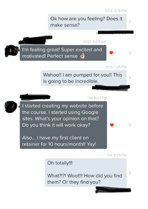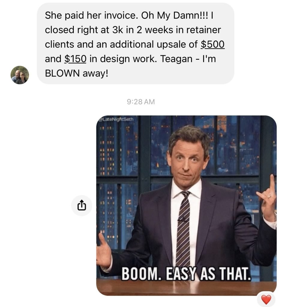 LikeΒ Mallory who landed 2 clientsΒ within the first 3 weeks of us working together.